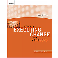 A Guide to Executing Change for Managers is a participant workbook designed to guide the managers in the workshop audience through their own tasks of the change initiative. The Managers, Supervisors, and Team Leads are responsible for carrying out the change strategy and plan. Each participant needs to have his or her own workbook to work through in a workshop or team meeting.